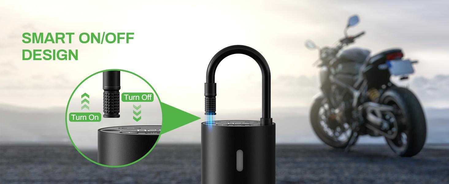 Safe and Smart - AT004's hose is also a carrying handle, say goodbye to tangled hose or losing it. You simply pull out the end of the hose to activate the air pump, then push it back into the air inflator’s body to turn it off,no more hose installation worries! If left unused for 3 minutes, it will automatically shut down to prevent accidental activation and ensure a safer user experience.